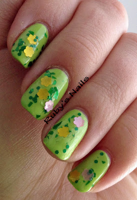 The translation isn't exact, of course, but it is still SO so gorgeous. Ready for the breakdown? The blue is Zoya "Ibiza", one of the most gorgeous deep blue cremes you'll run across. I used this tutorial by Nailside for the ruffled effect. The spotty layer is Sally Hansen"Ruby Rush" with accents of Zoya "Kendall" (Neutral) and Zoya "Zuza" (Teal) as the dots. All of it was topped with two coats of China Glaze Matte Magic.